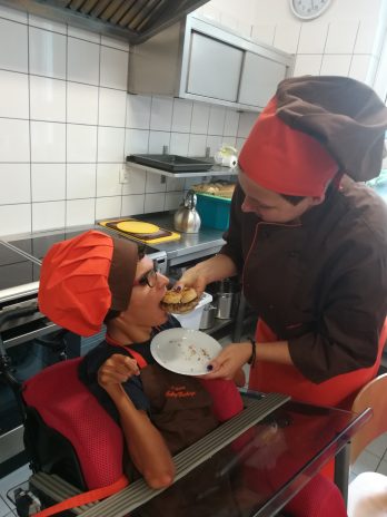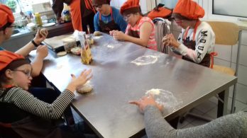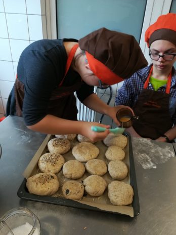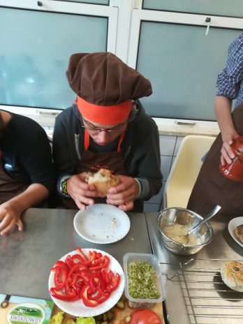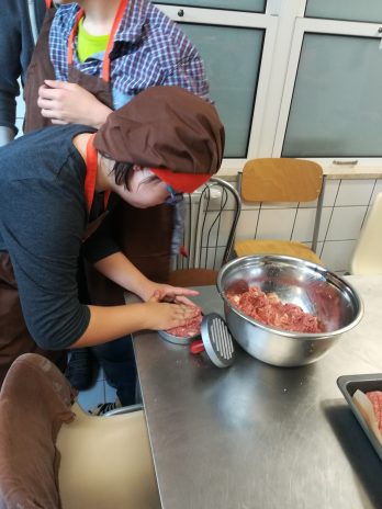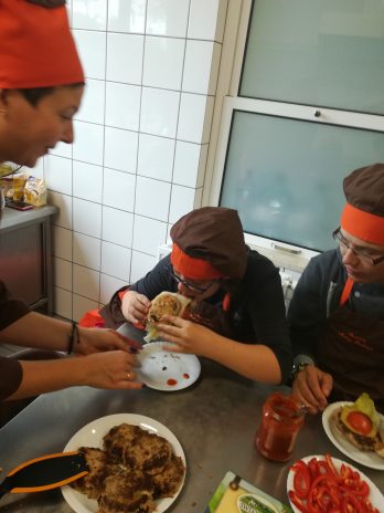 Grupa IV oraz VI po raz kolejny wzięła udział w zajęciach kulinarnych ARKADIA. Tym razem przenieśliśmy się do kraju, który słynie z fast food, czyli do Stanów Zjednoczonych. Na zajęciach uczyliśmy się jak przygotować zdrową wersję hamburgera. Na samym początku upiekliśmy pełnoziarniste bułki, a następnie zajęliśmy się doprawieniem i formowaniem mięsa mielonego. Aby było smacznie i zdrowo do naszych hamburgerów dodaliśmy dużo warzyw. Stany Zjednoczone słyną także z czekoladowych słodkości, my również mieliśmy okazję spróbować słodkiej alternatywy dla niezdrowego kremu czekoladowego. Otóż krem którego smakowaliśmy był ze suszonych daktyli, orzechów i kakao, zapewniamy, że był znakomity. Na tych zajęciach kulinarnych upewniliśmy się, że fast food może być nie tylko smaczny ale również pożywny i zdrowy 😉