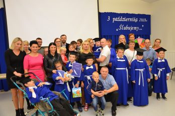 Dnia 3 października obchodziliśmy w Ośrodku ważną uroczystość. Tego dnia nowi koledzy zostali uroczyście przyjęci w poczet wychowanków naszego Ośrodka. Na wstępie uroczystości starsi wychowankowie wprowadzili kolejno nowych uczniów na aulę, udzielając im kilku cennych rad. Wychowawcy zaprezentowali umiejętności i osobowość swoich podopiecznych, a w kolejnej części uroczystości byliśmy świadkami Ślubowania, jakie złożyli nowi wychowankowie. Następnie zostali pasowani przez panią Dyrektor na nowych Wychowanków Ośrodka Rewalidacyjno- Wychowawczego w Szklanej. Członkowie Samorządu Uczniowskiego wręczyli nowopasowanym kuferki ze słodkościami. Na rodziców nowych wychowanków również czekało zadanie, z którym poradzili sobie znakomicie. Przygotowane zostało ono przez Radę Rodziców. Tego dnia również nowi pracownicy zostali oficjalnie przyjęci do społeczności ORW. Wszystkim życzymy wielu sukcesów w tym roku szkolnym.